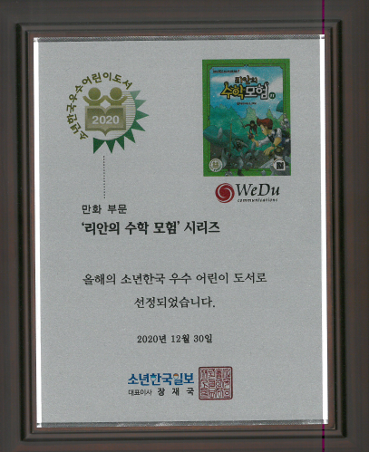 2020 소년한국 우수 어린이 도서 선정 페이지 정보 작성자 WeDu 댓글 0건 조회 10,212회 작성일 21-12-31 13:00 본문 2020-12-30 '리안의 수학 모험' 시리즈 우수 어린이 도서 선정 소년한국일보 대표이사 List Previous2021 4IR AWARDS 대상 21.12.31 Next2020 기술혁신 우수기업 21.12.31